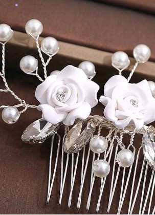 Love florals? Complete your bridal look with this feminine metal comb, made of pearl and crystal clu..