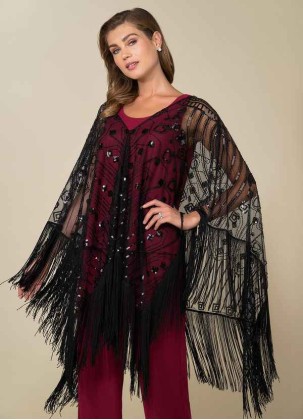 Delight is a sheer cape made with delicately embroidered lace. The intricate detail of the design cr..