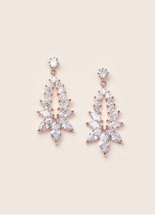 These drop earrings feature a single diamond embellished with a feminine feather design made of zirc..