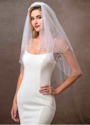 The perfect final touch for your bridal look! This delicate, two-tier fingertip veil, with its elega..