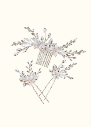 A white floral and alloy crystal comb, perfect for a messy bun or soft braids.Material Type:Crystal...