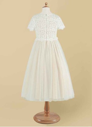 Mollie is our adorable flower girl dress cut from lace. She features a scoop neckline with a V-back ..