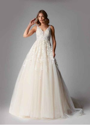 Make your way down the aisle in regal style while wearing our tulle and lace gown, Tatiana. She has ..