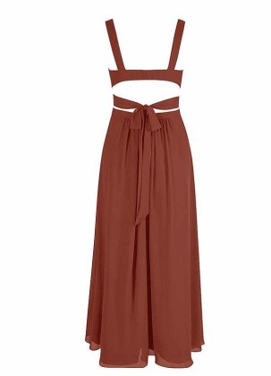 AZ Occasions Bow Tie Maxi Chiffon Dress with V Neckline