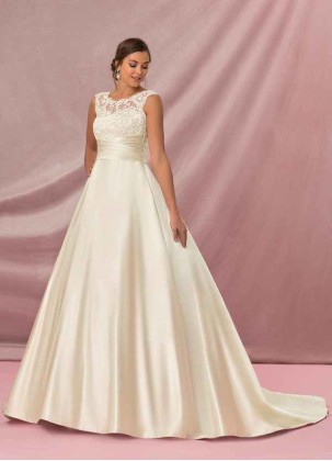 Dress Nicola BG by Bestcoc is a gorgeous satin and lace wedding dress featuring a boat neckline on a..
