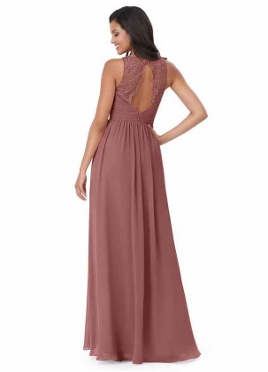 Gigi is a brilliant floor-length A-line cut dress made of chiffon. It has a pleated illusion necklin..