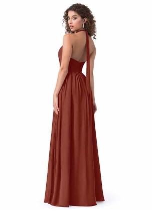 Cailyn is an elegant floor-length gown in an A-line cut. Cailyn features vertical pleats with a halt..