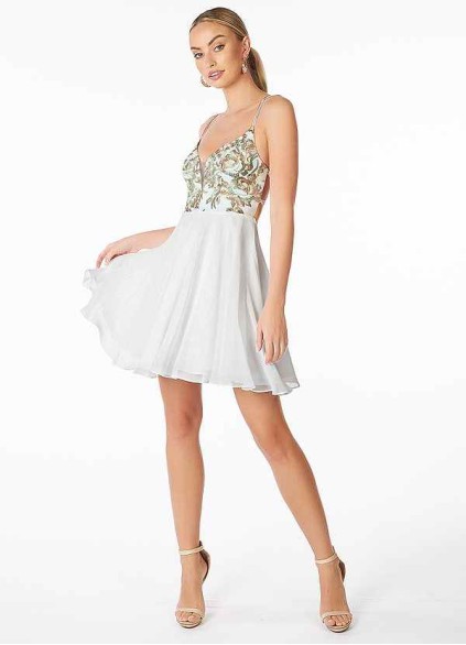 AZ Occasions Mini Embroidered Lace and Chiffon Skirt Dress
