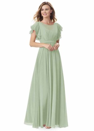 Kara is a floor-length modest bridesmaid dress in an A-line cut. It is made of pleated chiffon and f..