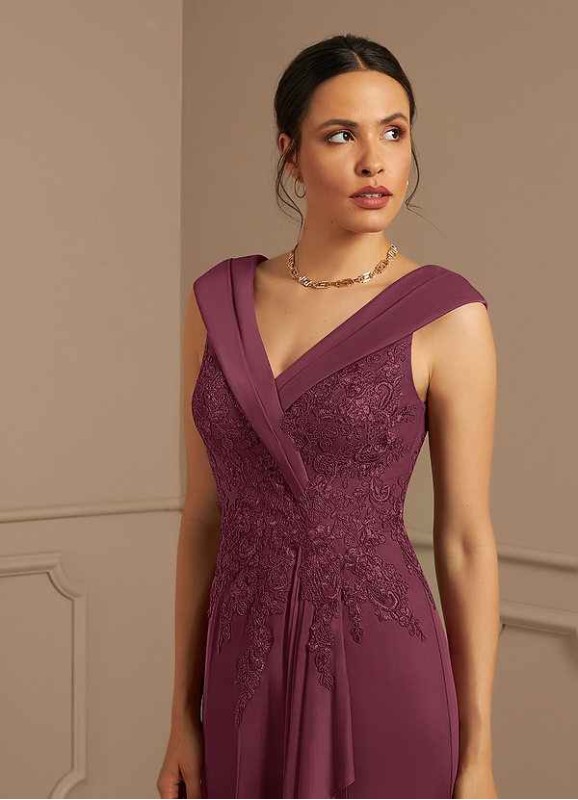 Calathea is an elegant choice to wear to your special occasion. Cut from stretch crepe, this dress features a V-neckline and hand sewn lace applique along the waistline. The beautiful mermaid skirt will hug your curves and has a pleated cascading skirt detail for added flare.