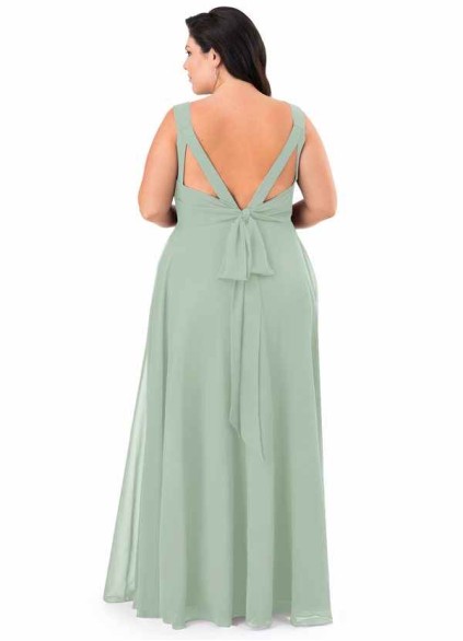 Julie is a modern and elegant choice for your leading ladies. Made from chiffon, this sleek dress features a sweetheart neckline with flattering banded straps. Her straps cross over the back bodice and create an interesting multi strap look that is finished off with an adjustable tie. A full A-line skirt with an alluring side leg slit completes the look.