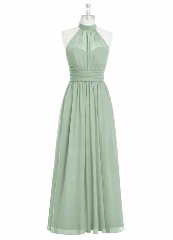 Iman is chiffon floor-length gown in an A-line cut. This dress features an illusion neckline and high neck. The dress also features a bow in the back of the neck and glamorous side slit. Available in full size range (A0-A30) and custom sizing.
