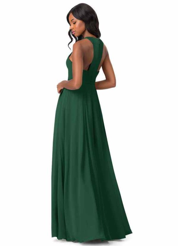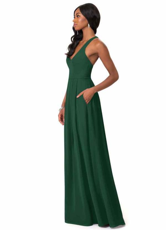 Let your party be luxurious in the simplicity of our chiffon dress, Mimi. Her v-neckline bodice is accompanied by a chiffon belt that sits atop a pleated a-line skirt. Her racerback bodice is designed for both style and comfort.