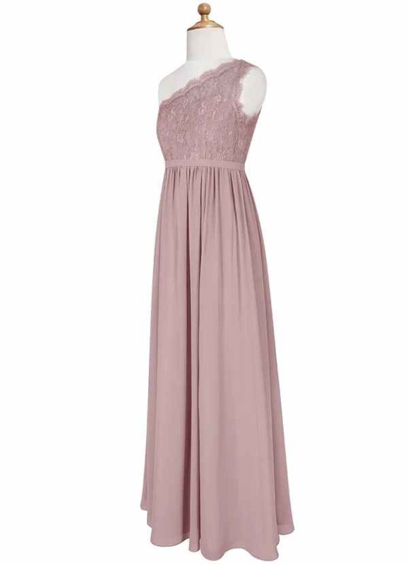 Look elegant and fashionable in JBD Demi! This chiffon and lace, a-line dress features a glamorous one-shoulder neckline and gathering on her full-length skirt. She even has a stylish mini leg slit for a fun flare!