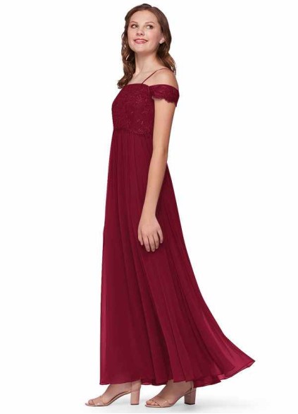 Feel lovely wearing Vidia! She is a floor length dress made of chiffon and lace. This stunning dress features a modern straight neckline, off-shoulder sleeves and gathering on the skirt. She even has adjustable spaghetti straps so she can fit you perfectly!