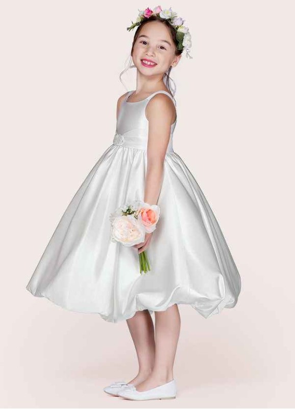 Your little angel will look adorable in this little girls dress featuring matte satin bodice and shimmery accents at the princesses belt. Elegant bateau neckline with ball shape skirt embellish this stunning dress.
